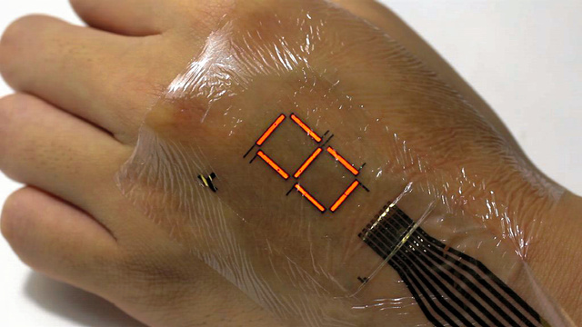 東京大學研究團隊近日開發出了一種可以貼在皮膚上的超薄有機EL顯示器。該顯示器與感應器相連接,可以在手背顯示脈搏數等。