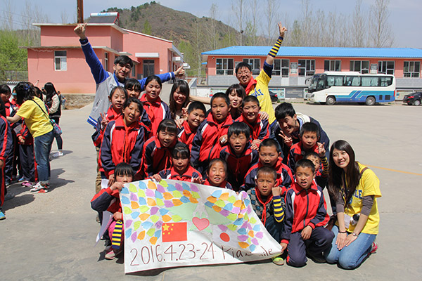 中國傳媒大學大四學生木本隆從2014年開始參加Pia-Smile活動,并于次年當選該團體第11任會長。今年他首次作為工作人員參加希望小學訪問活動。談及Pia-Smile的魅力,木本隆表示,“現在雖有各種各樣的日中交流團體,但大多是吸納對日本感興趣的人來參加,而Pia-Smile的活動卻是與不了解日本、甚至對日本不抱好感的農村地區的孩子們進行交流。孩子們通過親眼所見、親身與日本人接觸來了解日本,如果由此能改變他們對日本的印象,我覺得這才是真正意義上的日中友好”。此次活動,木本帶領30余名參與者來到了位于河北省農村地區的希望小學。全校師生為歡迎他們的到來特意舉辦了盛大的歡迎儀式,在之后的兩天里志愿者們和孩子們一起開展了豐富的交流活動,他們旁聽了孩子們的課堂;與孩子們一同跳大繩、玩運球接力賽;還向孩子們介紹了折紙以及日本傳統玩具;顒拥淖詈,志愿者與希望小學的孩子們合唱中國歌曲《朋友》,這也是木本最為感動的瞬間,“孩子們發自內心的歌聲打動了我,讓我記憶猶新”。