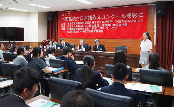 日本志愿者的學生在“第20屆中國高中生日語作文比賽”中獲一等獎