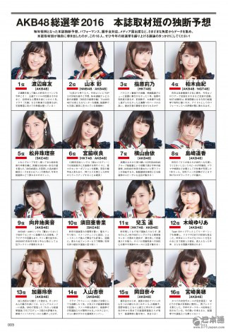 ■《AKB48總選舉官方指南書2016》取材班預測排名