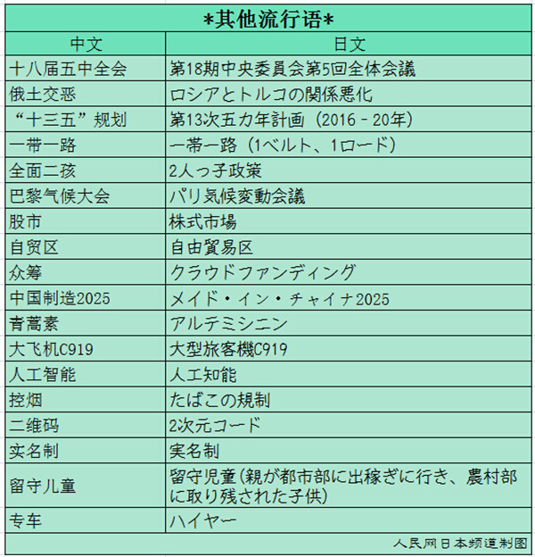 “廉”“互聯網+”“恐”“反恐”分別當選年度國內字、國內詞、國際字、國際詞。十大新詞語、十大流行語、十大網絡用語同時出爐。一起來學習一下他們的日語說法。