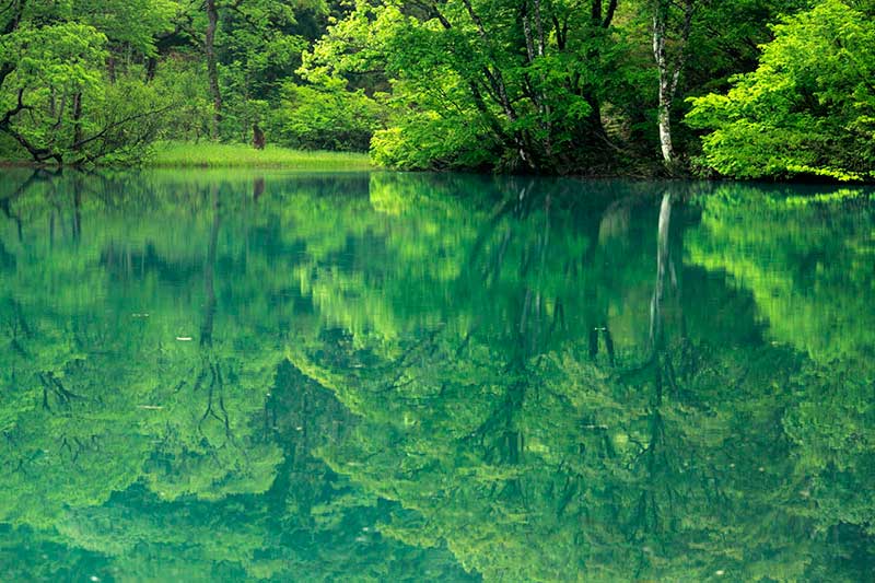 在去往蓮華溫泉的途中可以看到美麗的白池,即蓮花白池,它的水面像鏡子一樣倒映著樹木和天空,十分神秘。