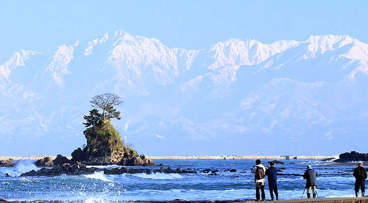站在富山灣,可以隔海眺望立山連峰,云霧繚繞時會顯得更為神秘。