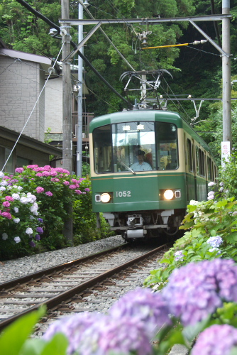“御靈神社”還是非常有名的絕佳攝影之地,拍照時可以將開滿了各種顏色繡球花的“繡球花小道”、沿途的繡球花以及復古的江之電電車收入同一鏡頭里。