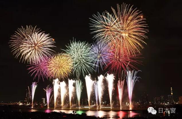7月最后一個周末舉行的隅田川花火大會,跟每年8月召開的東京灣大華火祭(因東京奧運場館建設,今年起中止)和神宮外苑煙花大會同被稱為東京三大煙花大會之一。分為兩個會場,花火總數達2萬發。而最浪漫的玩法,莫過于在游船上觀看。