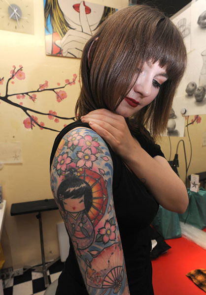 這位波蘭女孩自從18歲就有了紋身,現在背部、肩部、大腿紋有金魚、達摩、櫻花、燕子、美少女戰士等富有日本特色的圖案。但在日本,周圍的人總是盯著她的紋身,導致她不得不采取“行動”不至于頻繁引發人們對自己的關注,即使是夏天,她也要穿長袖將紋身蓋住。