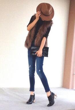 皮草搭配緊身小腳褲