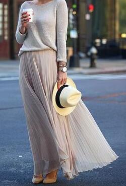 百褶裙搭配圓領毛衣