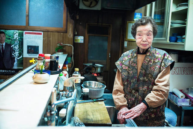 最近刊登在《東京時報》的一組照片中,攝影師查普曼用相機記錄下了東京街頭這些仍在工作的老人們。這些白發老人拄著拐杖同年輕人一樣穿梭在上下班的路途中,與世人眼中那座燈紅酒綠、科技發達到處充斥著朝氣的東京形成鮮明對比。