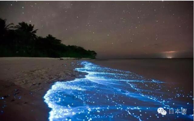 受到刺激的時候會發出籃光,并維持20-30分鐘,當它身上的藍光快要熄滅的時候,海水一沖又能再次發光。平時,它們隨著潮漲潮落漂浮在海面上,讓大海猶如銀河般絢爛。