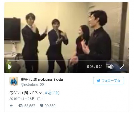該視頻是花滑選手織田信成發布在推特上的。視頻中,羽生和織田等四人一同伴著音樂表演“戀舞”,其中羽生的動作明顯更為標準。不少網友驚嘆“羽生跳得太完美了”“太專業了”,還有網友建議羽生登上今年紅白歌會的舞臺,與星野源共跳“戀舞”。