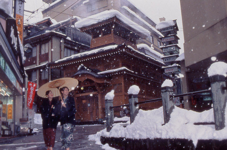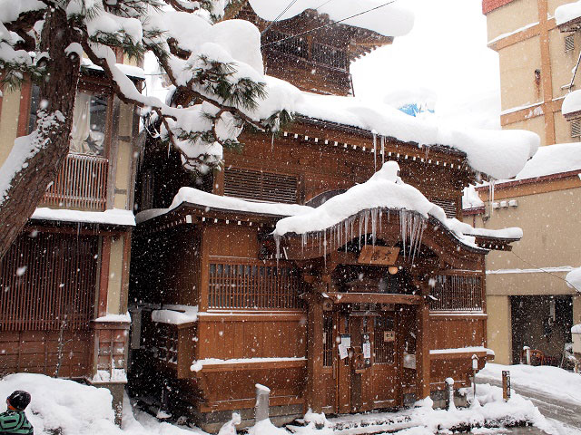 “SAKAYA旅館”臨近“大湯”,前身是江戶時代的釀酒廠,是擁有兩處天然湯泉的老字號溫泉旅館,大浴場是由宮殿木匠所修建的傳統湯屋建筑,別具一格。