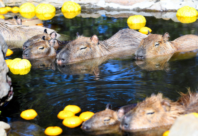 日本水豚冬至泡柚子溫泉 憨態可掬【2】