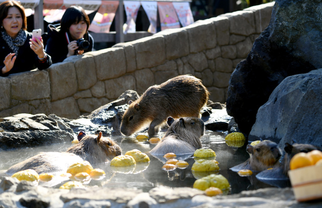 日本水豚冬至泡柚子溫泉 憨態可掬【3】
