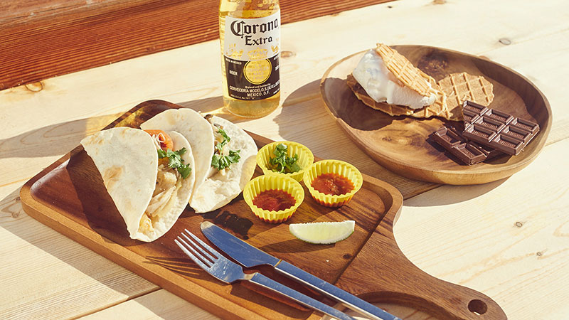 錫箔紙包著菜碼,在篝火上加熱,然后用墨西哥玉米餅卷上,再撒上沙司的雞墨西哥卷餅(1000日元)、魚墨西哥卷餅(1000日元)等等墨西哥風味的美食,在一千多米高的海拔上與你邂逅,再用墨西哥科羅娜啤酒犒勞自己的胃,想必日本粉雪與墨西哥美食的搭配,必定會為你的長野之行“溢價增值”。