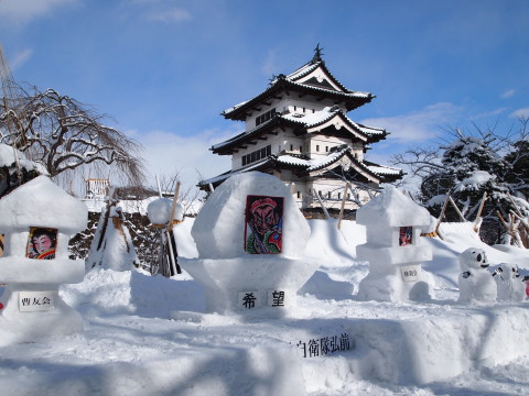 陸奧五大冰雪節之一。每年2月初,亮燈就會妝點白雪覆蓋下的天守閣和老松樹,蓮花池周圍還會排列多達近200座點著蠟燭的迷你雪屋,到處洋溢著夢幻之感。