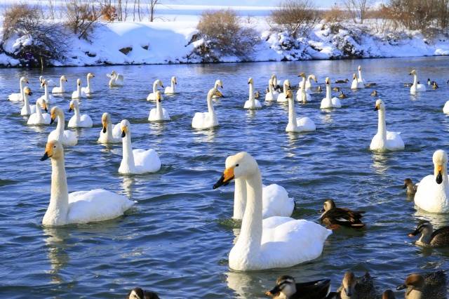 作為“天鵝聚居地”的淺所海岸,從10月中旬到3月下旬可以看到近千只白鳥,場面壯觀,值得一看。