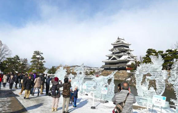國寶松本城冰雕節今年已經是第31屆。22日,是本屆冰雕節的最后一天,所有參賽作品悉數展出,觀眾在松本城旁邊欣賞不同造型的作品,為冬日的松本城增添了喜慶與活力。(編譯:劉戈 校對:陳建軍)