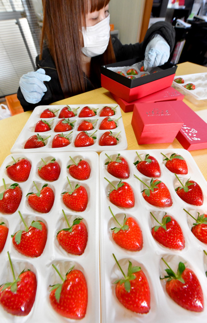 情人節將至 日本推出心形草莓 一顆78元(圖片來源:朝日新聞網站)