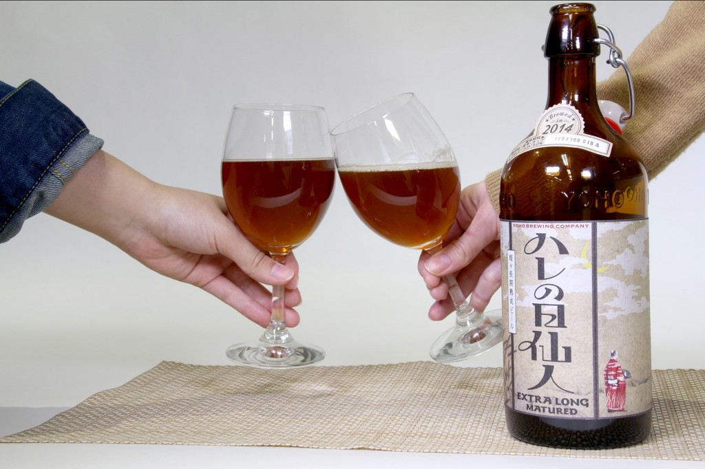 Hare no Hi Sennin擁有6個月~幾年不等的超長成熟期,是如葡萄酒般的啤酒。外表是深邃的琥珀色,香氣濃郁,口味甘甜。