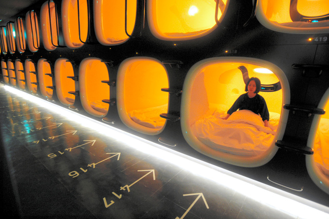 膠囊酒店“FIRST CABIN”的分店遍布東京、大阪等十個城市。2010年3月,該酒店在京都下京區開業,共121個房間。年入住率約為90%,每晚3000~5000日元(約180~300人民幣)。
