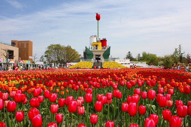 如今,建立在富山礪波的郁金香公園內有700個品種,300萬多株各種類的郁金香爭芳斗妍。每年日本黃金周前后會舉辦“礪波郁金香博覽會”,在蔚藍的天空下,心型花壇里的各色郁金香編織成一張彩色花毯。這些怒放的花朵組成了一幅美麗畫卷,游客們紛紛歡呼贊嘆。