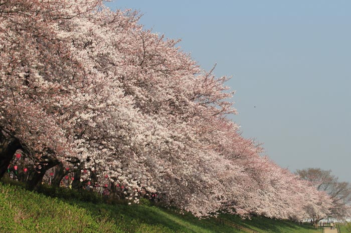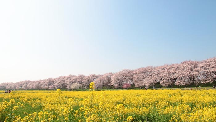 地處荒川河岸開闊地帶的熊谷櫻堤,也是油菜花與櫻花行程強烈視覺對比的地方,也入選日本櫻花名勝100選。