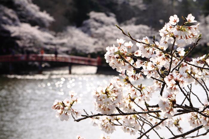 賞期在3月下旬到4月上旬。也有夜櫻,是夜晚散步的好去處。