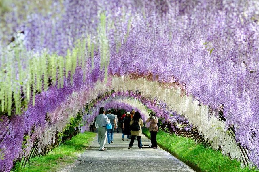 福岡縣“河內藤園” 日本最美紫藤蘿隧道