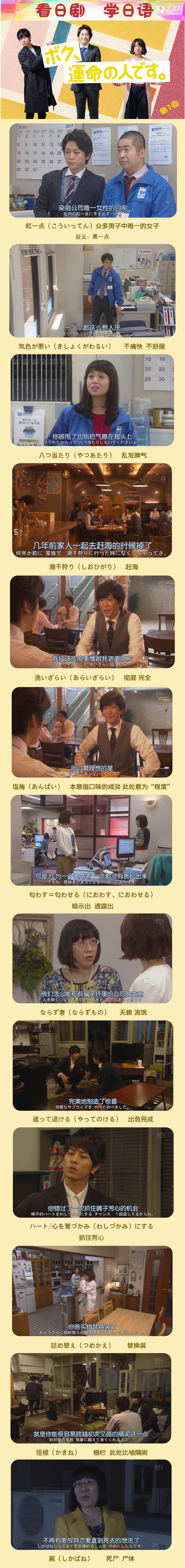 人民網東京6月6日電 2017春季日劇終于開播了!“命中注定”一貫是戀愛日劇拍也拍不完的題材。龜梨和也·山下智久·木村文乃此次共同演繹《我命中注定的人》。本期《看日劇·學日語》為你解析第七集中的一些日語詞匯與表達,單詞本準備好了嗎?