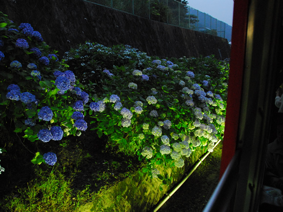 該公司員工從1970年左右開始種下了鐵道沿線的紫陽花,箱根溫泉本站至強羅站之間的區間則將于6月中旬至7月中旬迎來最佳觀賞期。此次推出的特別列車“夜之紫陽花號”沿線將設置六個地點,在夜間點燈,而列車途經這些地方時也會關閉車內燈光,減速或停車,乘客可在列車長的特別解說下觀賞盛開的紫陽花。