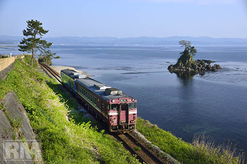 而冰見線的“忍者哈特利列車”的車身上,畫滿了藤子不二雄A先生的另一知名作品《忍者哈特利》的圖像。乘坐這輛童趣十足的列車,還可以欣賞到雄偉的立山群峰、雨晴海岸、富山灣等多處美景。