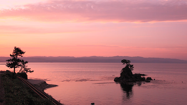 “五能線”鐵路緊貼日本海沿岸而建,迎面拍打而來的海浪近在咫尺,宛如調皮的少女,撩起裙擺堪堪躲過海浪嬉戲,不禁讓人感到一絲明快。