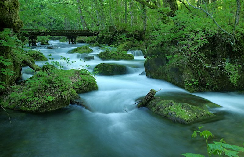 流經青森縣十和田市的"奧入瀨溪流“,總長度約14千米。溪流周圍到處都是奇珍異石,環境幽靜。