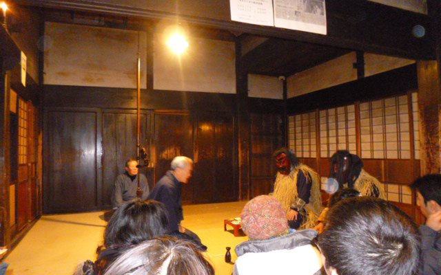真山地區最有名的是什么?答案就是“namahage”,這是一種祭神驅邪儀式,每年正月十五那天,島上年輕人會帶著巨大的面具,身披蓑衣,手拿木刀進行驅邪。此外,真山神社也會在每年2月的第二個周五、周六、周日舉行“namahage柴燈祭”,非常具有傳統特色。