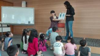 (左圖:中日兩國小學教材 右圖:參加日語親子活動“Nippon塾”的孩子們正在聽媽媽講的日語故事)