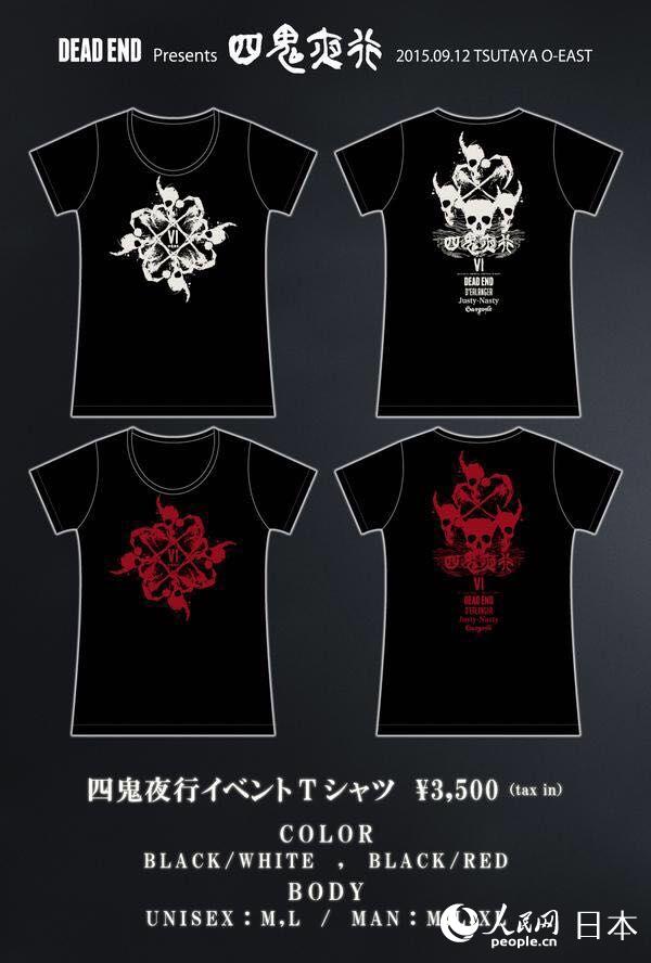 日本視覺系搖滾樂隊DEAD END的活動T恤上印有莊村所寫的書法“四鬼夜行”