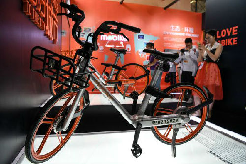 6月29日,觀眾在第二十一屆中國國際軟件博覽會上的摩拜單車展區參觀。(新華社)