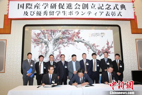 圖為日本國際產學研促進會理事成員與嘉賓合影留念。 尹法根 攝