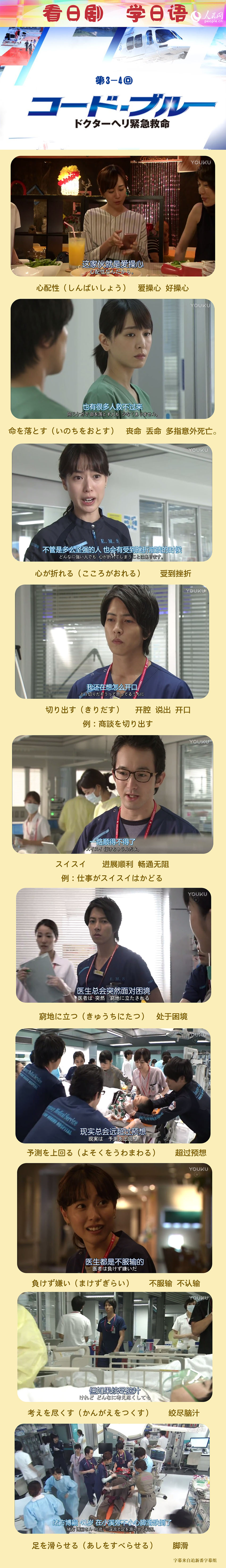 空調Wi-Fi西瓜,葛優同款沙發,燒雞鴨脖小龍蝦,打開日劇宅在家。2017年夏季日劇開播了!山下智久、新垣結衣、戶田惠梨香等男神、女神攜《code blue》第三季歸來,他們又將給我們帶來什么樣的感人故事呢?本期《看日劇 學日語》為你解析第3-4集中的一些日語詞匯與表達,單詞本準備好了嗎?(編譯:李霞 王聲)