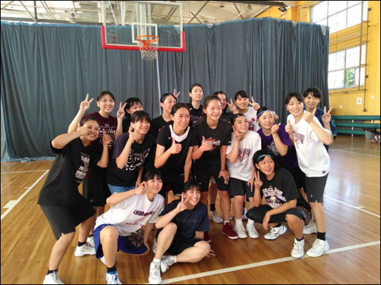 首都體育學院女籃隊員與“平成遣中使”籃球班隊員合訓后合影