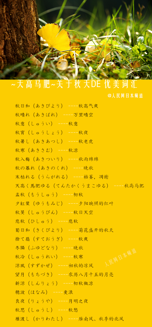 今日互動問題:你知道”葉落知秋“用日語怎么說嗎?答案將在人民網日文版微信、人民網日本頻道微博公布,歡迎參與討論~