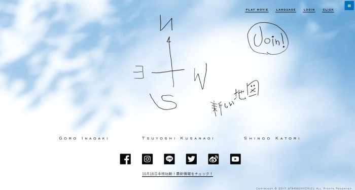 人民網東京10月16日電 日本頻道綜合日本時尚娛樂網站Model press報道,原SMAP成員稻垣吾郎、草剪剛、香取慎吾三人的官方網站“新地圖”16日正式啟動。當天網站上傳了新視頻,還宣布了“重磅消息”--三人將制作電影,明年上映。