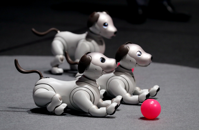 1999年發售的舊款機器狗“aibo”只有設定好的幾種感情表達模式,而新款則搭載了人工智能,機器狗通過鼻子上的攝像頭辨識主人的表情,通過眼睛的顏色以及動作自主地表達情感。