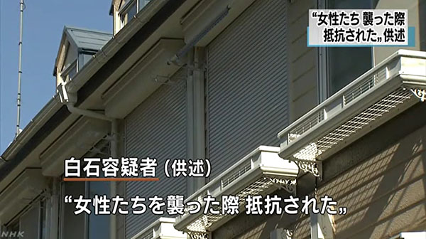 據NHK電視臺報道,白石隆浩嫌疑人承認在自家住所殺害了9名男女。在調查中,該嫌疑人稱,這些女性見面之前在推特上透露出有希望自殺的想法,但自己跟她們說要一起自殺,把她們叫到房間內,在殺害她們的時候卻遭到了反抗。