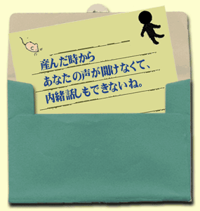 母:從生你那刻起,就聽不見你的聲音,連悄悄話都沒辦法說呢。