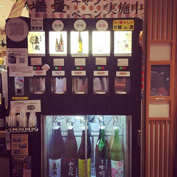 目前,仙臺站的自販機售賣6種地方名酒,分別是仙臺市伊沢家勝山釀酒廠出品的仙臺車站限定款“仙臺驛政宗”,石卷市平孝釀酒廠的“日高見”,鹽釜市佐浦釀酒廠的“浦霞”,宮城県村田町大沼釀酒店的“大沼屋”,青森市西田釀酒店的“田酒”,鶴岡市鬼之井釀酒廠的“BAKUREN”。