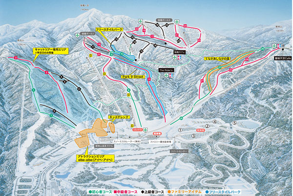 特點:以“阿司匹林粉雪”(Aspirin Snow)蜚聲海內外,擁有最好的雪質,利用山的分布巧妙設計出來的雪道,深受好評。