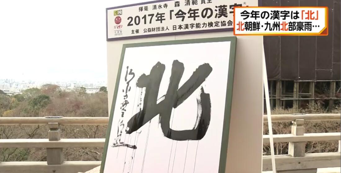 今年的年度漢字評選共收到來自日本全國超過15萬張投票,“北”字獲得了7000余票,排名第一位。其當選的主要理由為,今年“北朝鮮”的導彈曾落入北海道海域、九州北部地區遭遇了暴雨災害,這些與“北”相關的事件令人們意識到了和平與安全的重要性。
