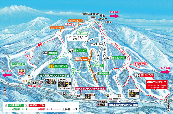 從滑雪場山頂或中間地點有聯絡通道通往旁邊的“奧志賀高原滑雪場”,如果購買通票,可以體驗更加的雪道。
